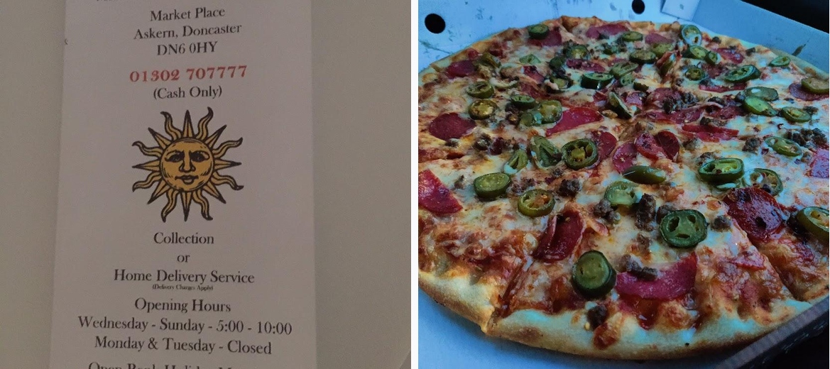 Ordered by phone and was to drive past 20minutes later, pizza just came out of oven , friendly staff and owner, was impressed with their cleanliness and working practices , stopped in a lay-by on a country lane and the pizza was beautiful felt like a real treat. You are doing a great job, thank you